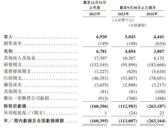 宝济药业2024年前9个月营收为444万元,上年同期为504万元;研发开支为1.84亿元,行政开支为7805万元;期内亏损为2.63亿元,上年同期的期内亏损为1.13亿元。