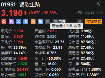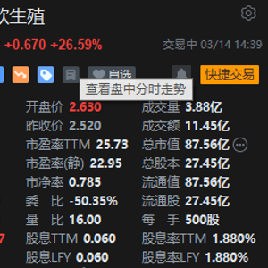 受此消息影响,今日港股乳制品、辅助生殖等婴孩概念股集体上攻,锦欣生殖强势涨超26%。截至发稿,现报3.19港元,成交额达11.45亿港元。