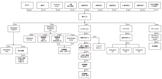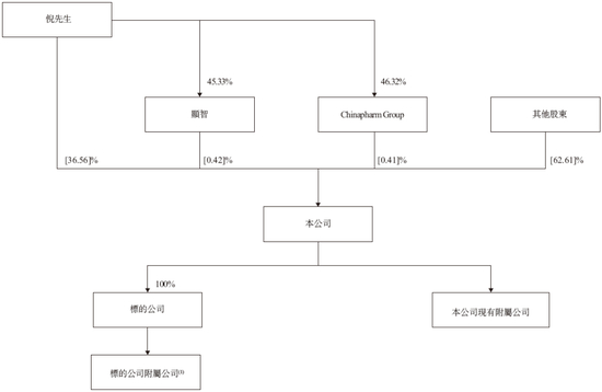 上市文件显示,在合并前,亿腾医药的股东架构中,控股股东倪昕先生,通过Suremoment Investments、Chinapharm Holding、显智、Chinapharm Group等,合共控制公司45.19%的投票权。