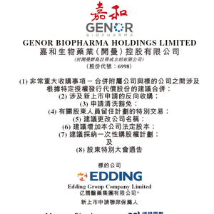2025年4月15日,嘉和生物-B(06998.HK)向港交所递交上市申请书,亿腾医药集团有限公司Edding Group Company Limited(标的公司,下称“亿腾医药”)通过换股方式反向收购嘉和生物,合并后公司将更名为亿腾嘉和医药集团有限公司(下称“亿腾嘉和”)。这是香港首宗18A未盈利生物科技公司反向并购案例。