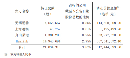 复星医药又在4月15日与舟山果运签订股份转让协议,向对方收购138.12万股复宏汉霖非上市股份,每股代价为24.6港元,涉3397.75万港元。