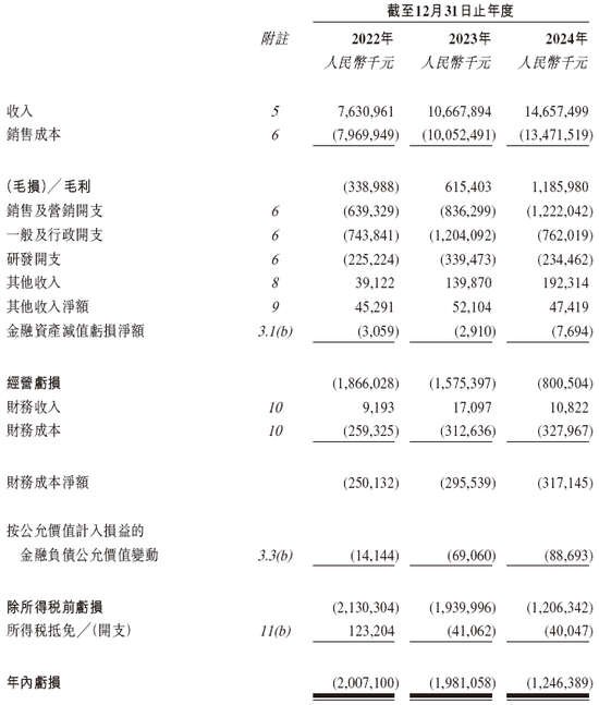 财务数据显示,在过去的2022年、2023年和2024年,曹操出行的营业收入分别为人民币76.31亿、106.68亿和146.57亿元,相应的净亏损分别为人民币20.07亿、19.81亿和12.46亿元,,相应的经调整净亏损分别为人民币16.51亿、9.66亿和7.24亿元。