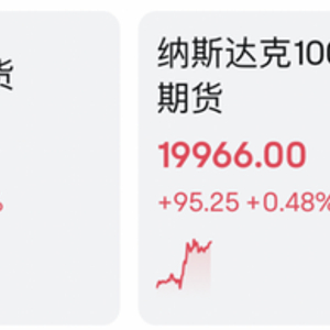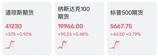 与此同时,美股主要股指期货盘中亦集体拉升翻红,截至11点,道指期货涨0.92%,标普500指数期货涨0.79%,纳斯达克100指数期货涨0.48%。
