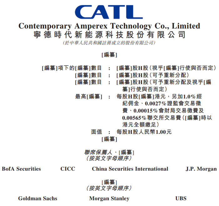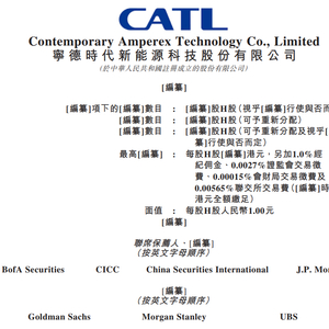 据港交所5月6日披露,宁德时代新能源科技股份有限公司通过港交所主板上市聆讯,保荐人兼整体协调人包括美银、中金公司、中信建投国际、摩根大通、高盛、摩根士丹利、UBS。