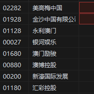 5月6日消息,港股博彩股早盘强势,美高梅中国涨近8%,金沙中国有限公司涨超4%,永利澳门涨逾2%。