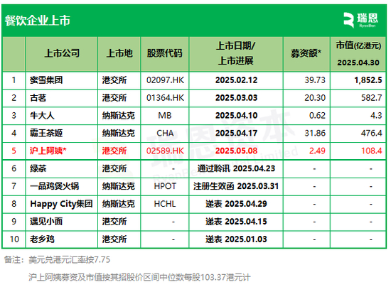 沪上阿姨(02589.HK),将于5月8日在香港上市;