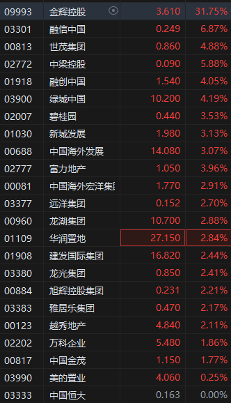 公积金贷款利率降低0.25个百分点 内房股强势大涨 金辉控股一度涨超45%