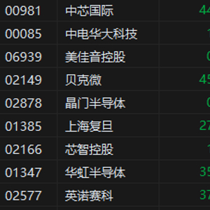 5月8日消息,港股半导体股普遍下跌,其中,中芯国际、中电华大科技、美佳音控股跌超2%,贝克微、晶门半导体等跟跌。