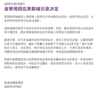 5月8日,香港金融管理局回应美联储议息决定。