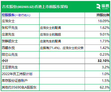 庄浩女士、张和平先生、庄澍先生、贺静颖女士、西藏永悦、陆它山先生等股东为一致行动人士,合共持股约32.1%。