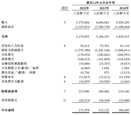 招股书显示,在过去的2022年、2023年和2024年,吉宏股份的营业收入分别为人民币53.76亿、66.95亿和55.29亿元;相应的净利润分别为人民币1.72亿、3.32亿和1.84亿元。