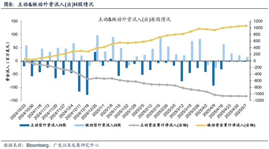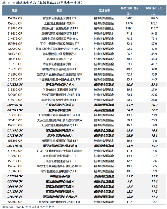 (2)从整体数据来看,截止2025年一季报,公募基金(含被动)投资港股规模达4374.8亿,占全部公募资产净值14.4%,为历史新高。其中AH两地配置的主动型基金在一季度增配了较多港股标的,这部分产品后续的调仓情况可能对港股整体流动性带来一定影响。
