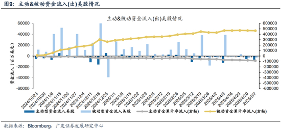 美股主动资金流出小幅扩大,被动资金变化不明显。