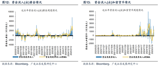 本周资金继续流出黄金,加密货币板块资金保持流入。截至本周三(45月1日—5月7日),资金净流出黄金5.1亿美元,相比上周流出15.0亿美元有所减少。加密货币资产周度资金净流入11.3亿美元,相比上周流入23.0亿美元减少。