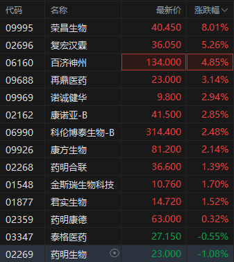 中美会谈结果超出预期 港股生物医药板块反弹