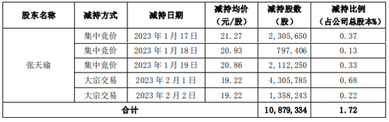 近年来,张天瑜在享受高额分红收益的同时,还持续通过减持股份进行大规模套现。据瑞财经《预审IPO》统计,从2020年9月24日到2023年2月2日,张天瑜共进行了16轮减持操作,期间合计套现约11.58亿元。