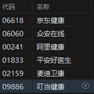 5月14日消息,港股互联网医疗股齐涨,京东健康超5%领涨。众安在线涨超3%,阿里健康涨近3%,平安好医生涨超2%。