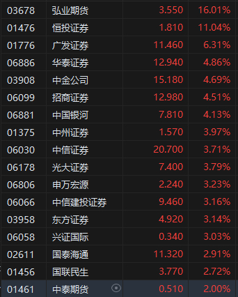 机构称券商业绩有望延续双位数增长 港股中资券商股全线走强 弘业期货一度涨超25%