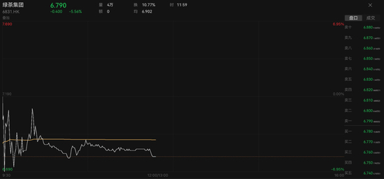上市首日上午绿茶股价走势情况(港元/股)
