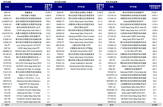 图表3:追踪恒生指数、恒生国企指数和恒生科技指数的ETF基金规模