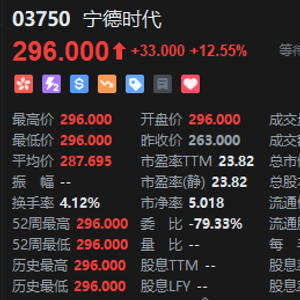 宁德时代港股高开12.55% 一手赚3300港元