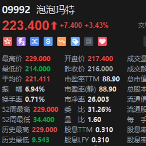 泡泡玛特午后涨近6% 股价再创历史新高 总市值突破3000亿港元