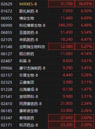 港股生物医药板块狂飙,新股恒瑞医药、MIRXES均涨超30%