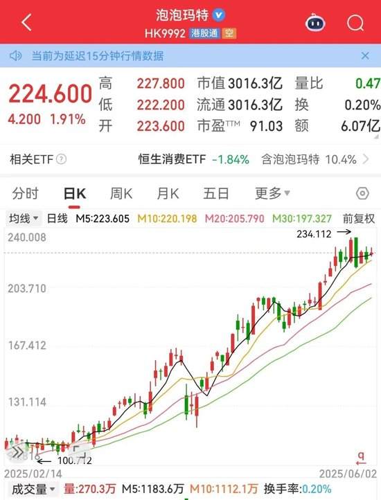 除了创新药方面,新消费也是今年港股市场较大的亮点。今天上午相关龙头股继续亮眼表现,泡泡玛特涨近2%。消息面上,泡泡玛特旗下IP“LABUBU”已从一款小众设计师玩具跃升为国际潮流偶像。数据显示,去年LABUBU为泡泡玛特贡献了约4亿美元的收入。最新上市的LABUBU系列在美国、英国等地经常几分钟内售罄,其火爆程度丝毫未减。