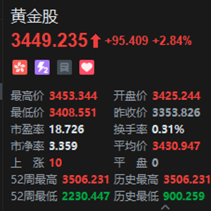 黄金股继续强势 中国黄金国际再创新高 金价上涨一度重回3400美元