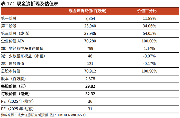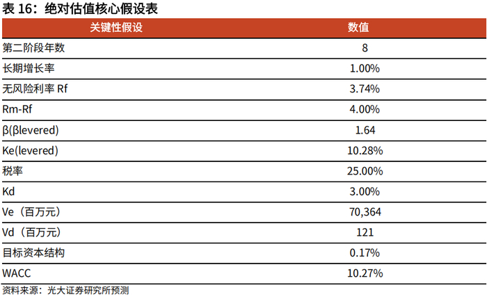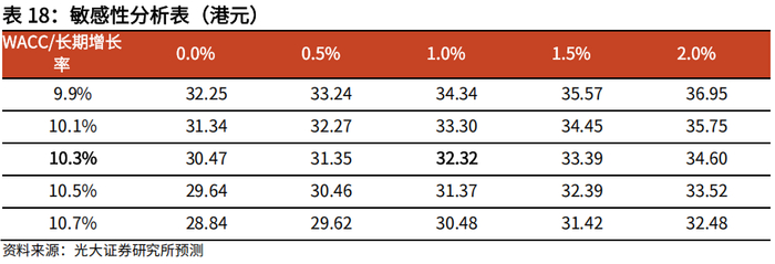 我们采用绝对估值法对公司进行估值,根据以下假设,我们利用FCFF估值法,测算公司每股价值为32.32港元。