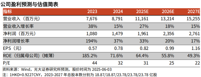 综合来看,我们预测公司2025-2027年归母净利润分别为19.61/23.56/27.61亿元,对应EPS分别为0.82/0.99/1.16元,当前股价对应2025-2027年的PE分别为31X/25X/22X。