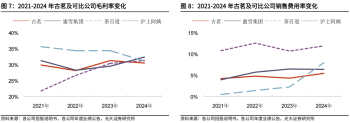 古茗毛利率及主要费用率处于行业中游,总体保持相对稳定。与若干可比公司相比,古茗的毛利率、销售费用率和管理费用率均处于中等水平,其中毛利率总体保持相对稳定,表明公司在成本控制和产品定价策略上取得了较好的效果。