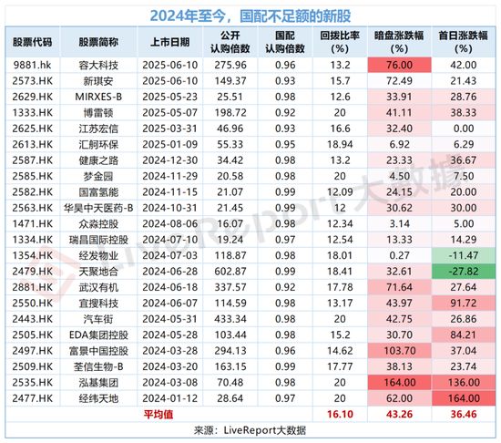 所谓“套路回拨”,即如果国际发售认购不足,若公开发售超过100倍,也可以启动20%的回拨,代价是必须下限定价。据LiveReport大数据统计,“套路回拨”的股票于上市首日往往股价表现较为亮眼。