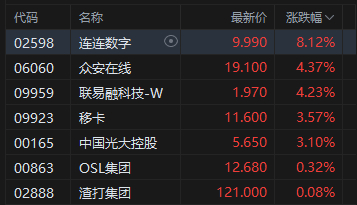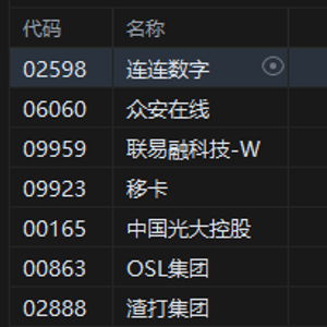 6月14日消息,港股稳定币概念股高开,连连数字涨超8%,众安在线、联易融科技涨超4%,移卡、中国光大控股涨超3%。