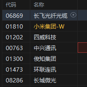 港股电讯设备股午后涨幅居前,长飞光纤光缆涨超6%