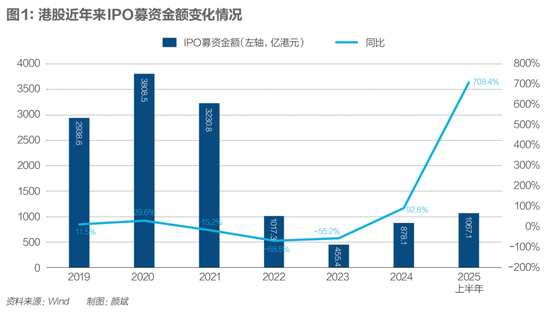 2025年上半年,港股IPO持续升温。万得(Wind)数据显示,截至6月30日,港股上半年已完成43宗IPO,同比增长43.3%;累计募资额飙升708.4%至1067.1亿港元,接连超越纽交所、纳斯达克以及印度国家证券交易所,时隔四年重返全球第一。2025年港股IPO的火爆及国际资本对优质标的的争抢,可以从龙头新股上市中窥见一斑。