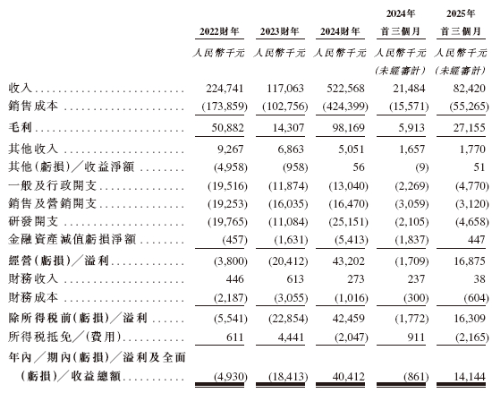 招股书显示,在过去的2022年、2023年、2024年和2025年前三个月,海清智元的营业收入分别为人民币2.25亿、1.17亿、5.23亿和0.82亿元,相应的净利润分别为人民币-493.0万、-1841.3万、4041.2万和1414.4万元。