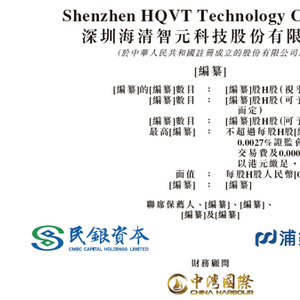 2025年8月6日,来自广东的深圳海清智元科技股份有限公司 Shenzhen HQVT Technology Co., Ltd.(简称“海清智元”)在港交所递交招股书,拟在香港IPO上市。