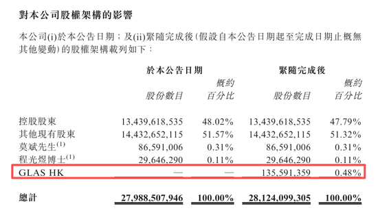 完成后,配售股份相当于扩大后已发行股本约0.48%。