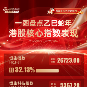 蛇年收官日,港股三大指数集体收红。截至收盘,恒生指数涨0.59%,恒生科技指数涨0.13%,国企指数涨0.56%。从蛇年全年表现看,恒生指数累涨超32%,恒生科技指数累涨超13%,国企指数累涨超23%。