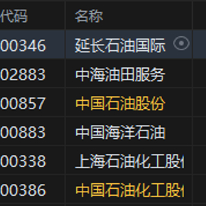 港股石油股全线高开,延长石油国际涨超9%,中海油田服务涨超8%,中国石油股份涨近6%,中国海洋石油涨超5%,中国石油化工股份涨超2%。