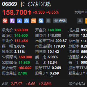 再创历史新高!长飞光纤光缆盘中逆市拉升涨超6% 年初至今暴涨超200%