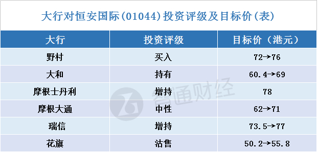 大行对恒安国际(01044)最新投资评级及目标价汇总(表)