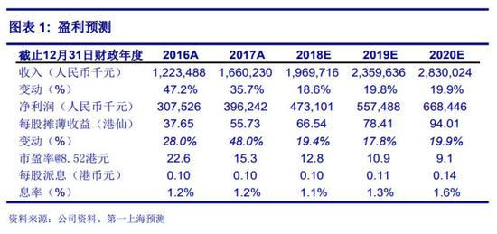 我们认为公司未来三年仍将保持较快增长,预计 2018-2020 年净利润将达到 19.70 亿、23.60 亿及 28.30 亿人民币。以公司 2018 年 16 倍市盈率作为估值参考,提高目标价至10.65 港元,较现价有 25%的上升空间,维持买入评级。