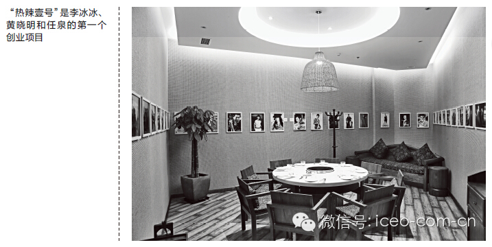 “现在所有大的电影制作商都愿意跟我们合作,我们每一家店一个月有两万的流量,而这些人都是主流消费电影的一群年轻人。”任泉说,热辣投资的团队目前已经超过30人,每周一经营团队和营销团队都要头脑风暴。“互联网思维做火锅”这个概念从设想到实施出乎意料地顺利。任泉是“热辣壹号”主要的经营者,而黄晓明和李冰冰更多扮演了出资人和联合创始人的角色。但他们对这次创业的结果很满意:刚刚开业的第一家店门口就排起了长队,现在几乎每天都有明星来店里光顾,这里俨然已成为时尚人士聚会的热门场所。