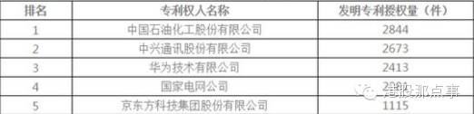 2015年企业发明专利授权量排名