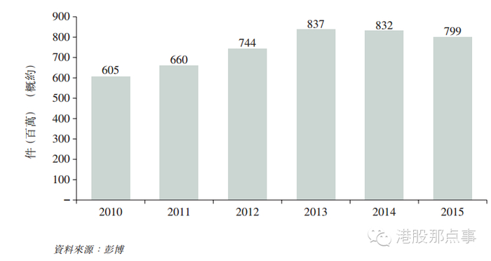 2010—2015年全球LCD面板出货量