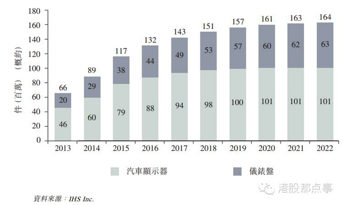 2013—2022年按应用领域划分的TFTLCD汽车显示屏全球出货量