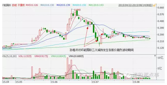 环能国际(1102.HK)最新报价0.125元。孙粗洪目前为公司董事会主席,执行董事,官方公布的年薪是54万港元。孙粗洪对华能国际进行过3次减持(下图),虽然减持的量很少,但从整体上看,三次减持都是在价格剧烈波动时期进行的。
