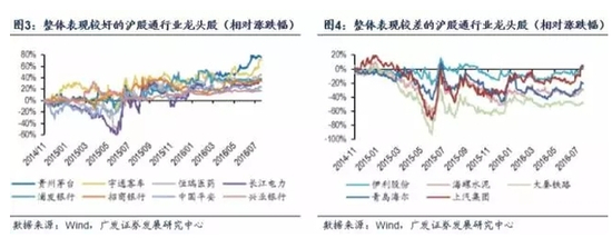 如果从相对涨跌幅(剔除所属行业趋势)角度看,贵州茅台、宇通客车、恒瑞医药、长江电力、浦发银行、招商银行、兴业银行和中国平安等8只龙头股的整体走势要优于行业平均水平;而大秦铁路、海螺水泥、青岛海尔、上汽集团和伊利股份等5只龙头股的表现不如行业平均水平。